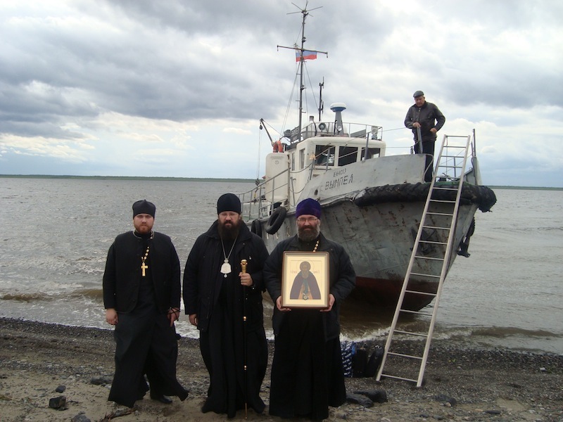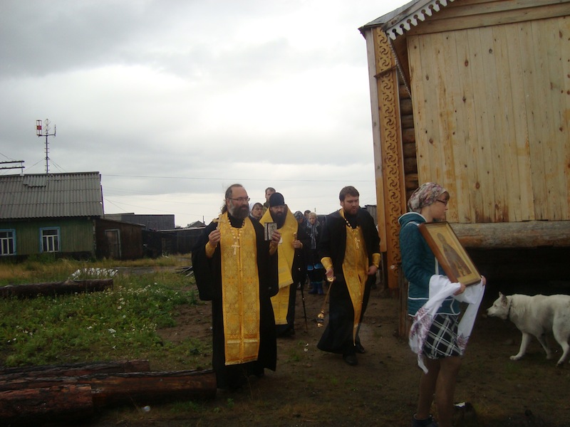 Первый приезд правящего архиерея был большим событием для поселка. Они встретили Владыку Агафангела собственноручно испеченным хлебом и солью, и подарили ему букет полевых цветов. Эта поездка была продолжением Крестного хода по водам бассейна Енисея, совершаемого в Норильской епархии в честь 700-летия преподобного Сергия Радонежского. Участники Крестного хода привезли с собой икону преподобного Сергия с частицей его святых мощей. Жители поселка получили возможность поклониться великой святыни.