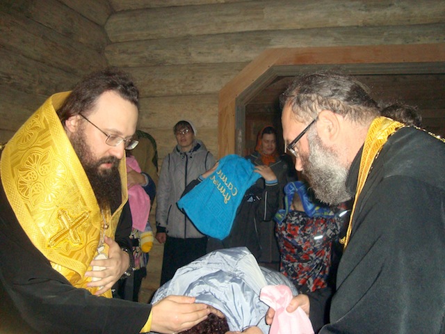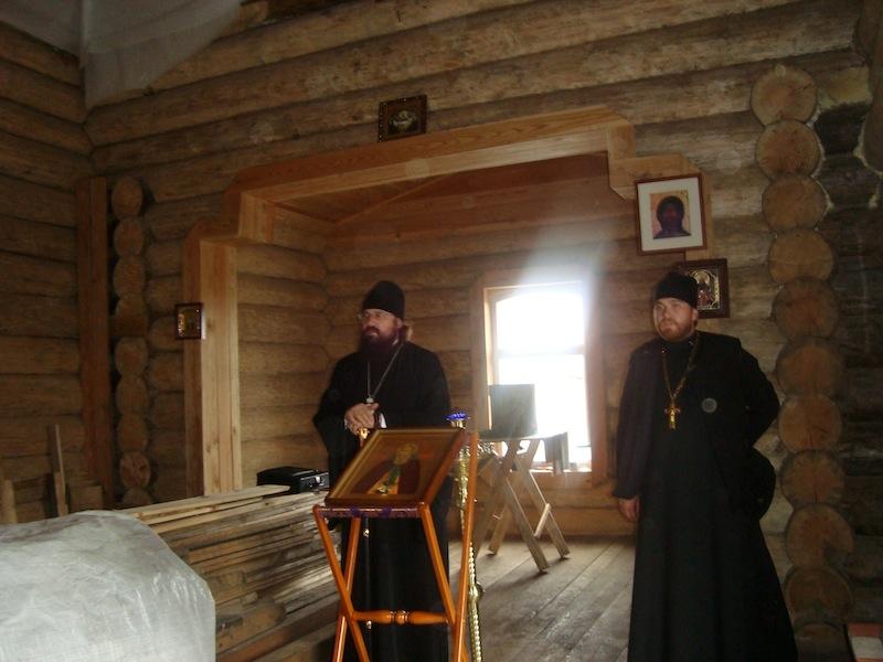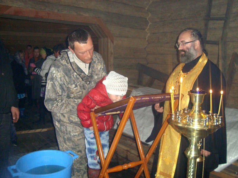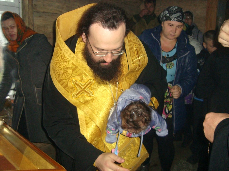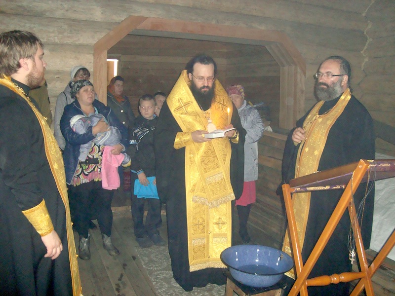 Владыка с сопровождающими его клириками епархии также совершил молебен перед храмовой иконой Божьей Матери, а также таинство крещения. Владыка Агафангел сказал крестившимся и их восприемникам напутственное слово и подарил пояски освященные на поясе Божьей Матери на память об этом незабываемом в их жизни событии, а затем побеседовал с собравшимися в храм жителями поселка. В дар храму он передал икону первого сибирского святого мученика Василия Мангазейского с благословением Святейшего Патриарха Кирилла.