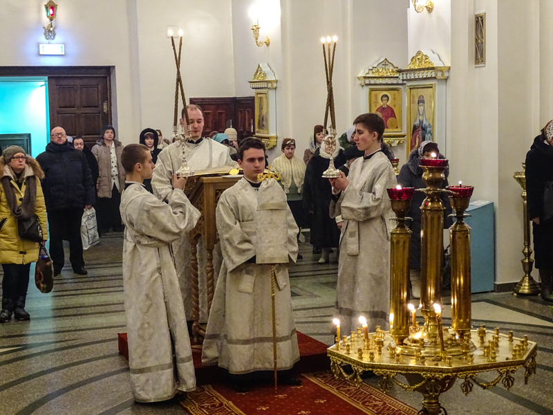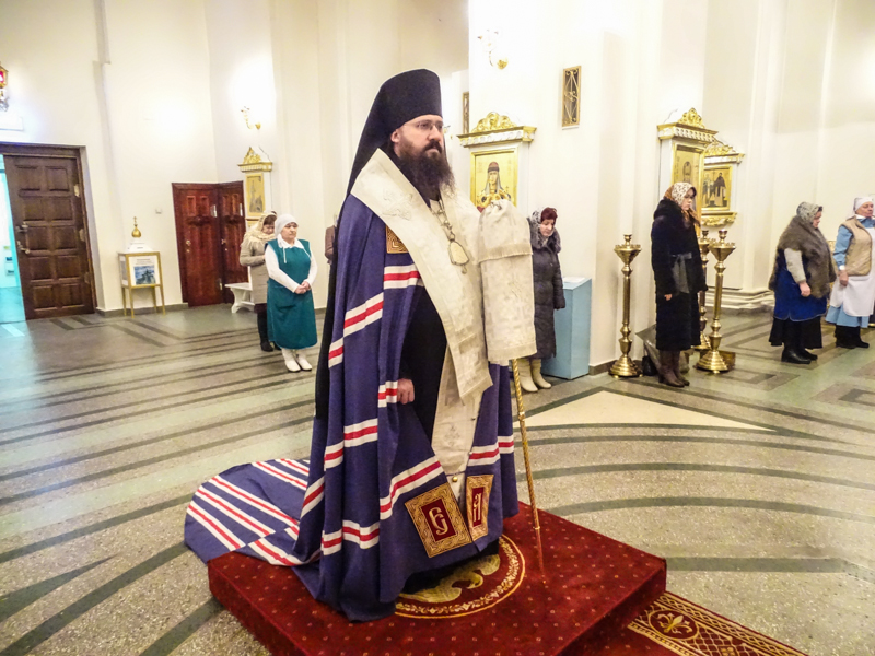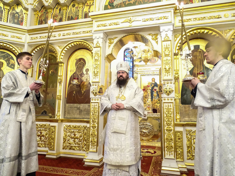 Его Преосвященству сослужили: секретарь Норильской епархии иеромонах Герман (Мельников); благочинный Норильского округа протоиерей Владимир Иванов; клирики кафедрального собора.