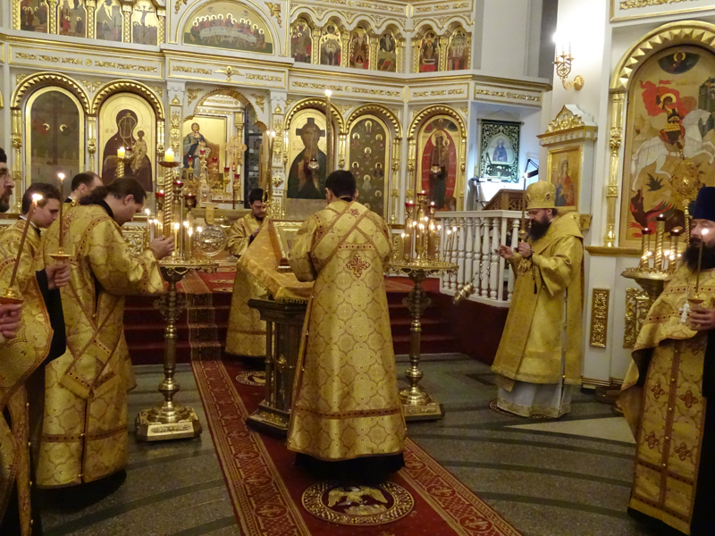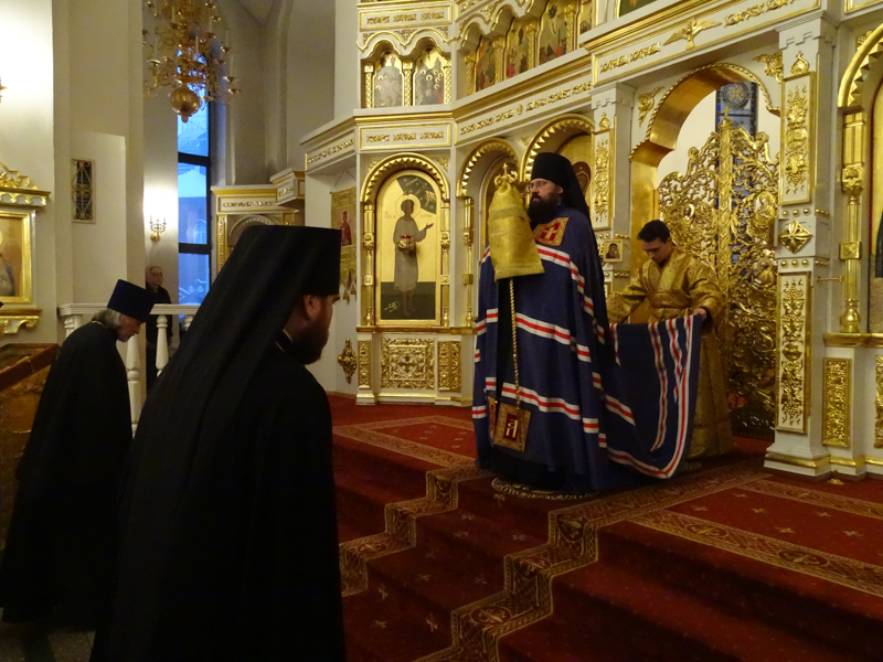 По окончании сугубой ектеньи Владыка Агафангел совершил молитву о даровании мира и прекращения междоусобной брани на Украине.