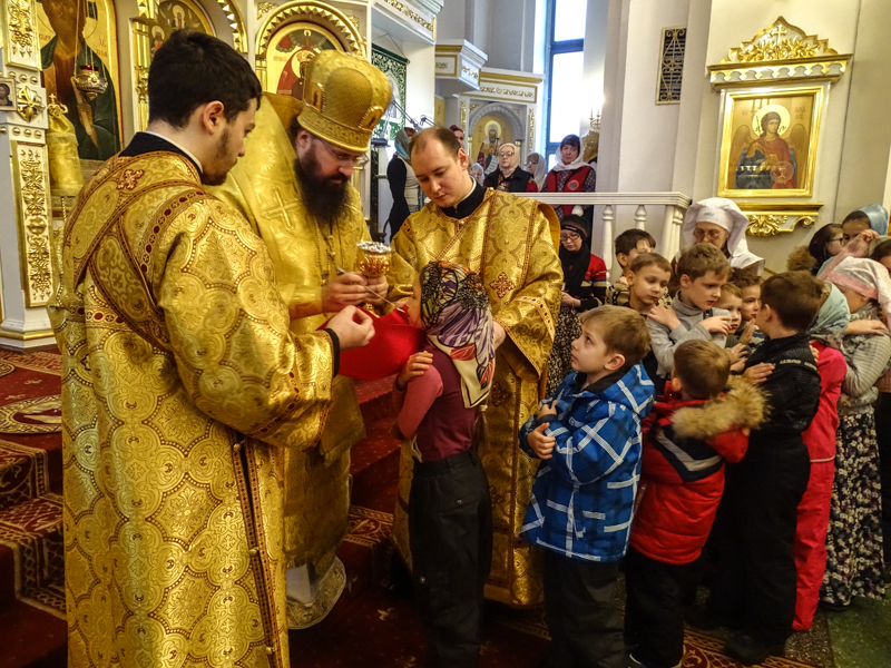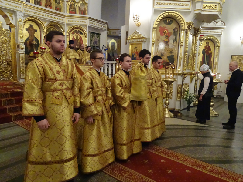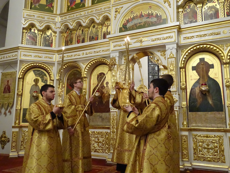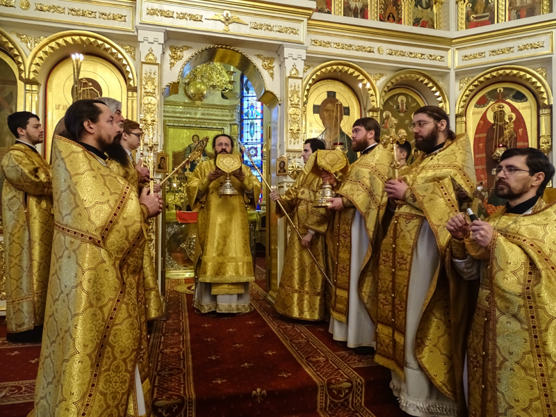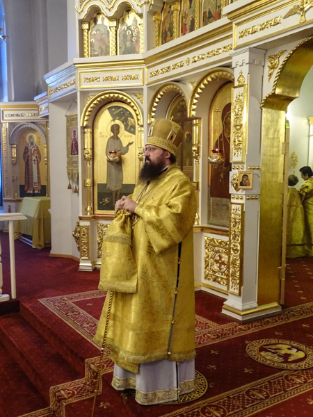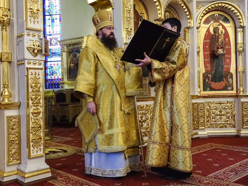 Его Преосвященству сослужили: Секретарь Норильской епархии иеромонах Герман Мельников, благочинный Норильского округа и ключарь кафедрального собора протоиерей Владимир Иванов, председатель епархиального отдела по взаимодействию с вооруженными силами протоиерей Димитрий Харцыз, клирики кафедрального собора.