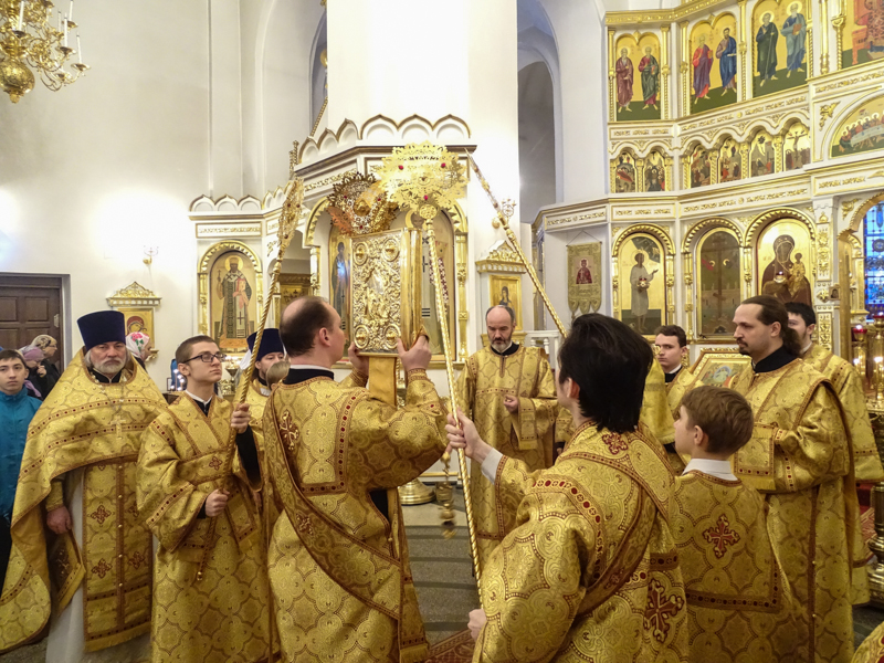 По окончании Божественной литургии Архипастырь огласил послание Освященного Архиерейского Собора клиру, монашествующим и всем верным чадам Русской Православной Церкви.
