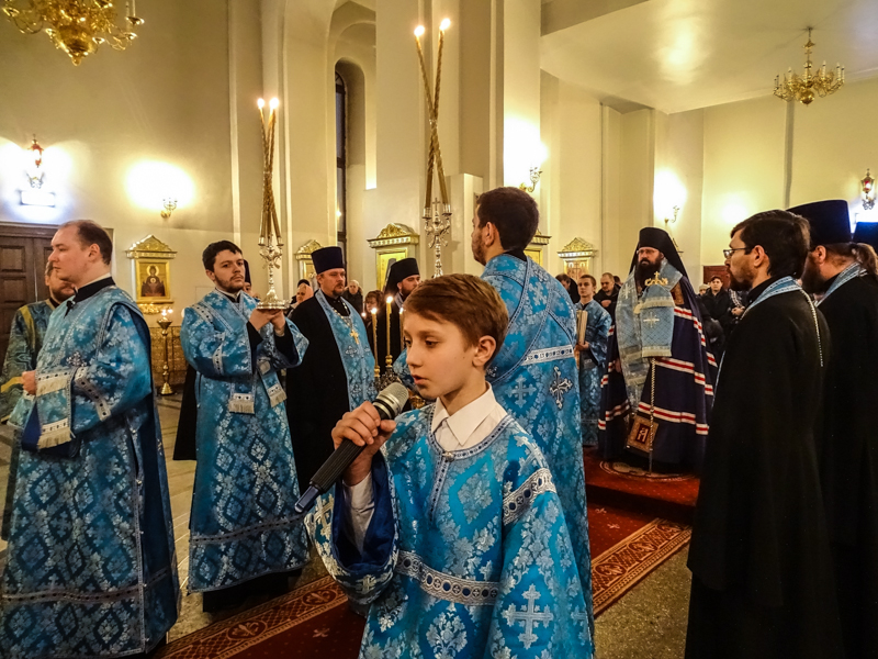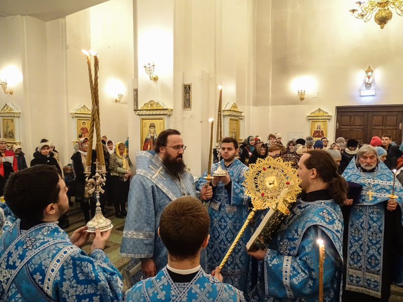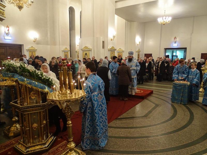 14 февраля 2016 года, в день предпразднства Сретения Господня, Преосвященнейший Агафангел, епископ Норильский и Туруханский, совершил Всенощное бдение в кафедральном соборе в честь иконы Божией Матери «Всех скорбящих Радость» города Норильска.