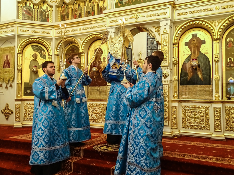 Его Преосвященству сослужили: секретарь Норильской епархии иеромонах Герман (Мельников); благочинный Норильского округа протоиерей Владимир Иванов; штатный клир собора.