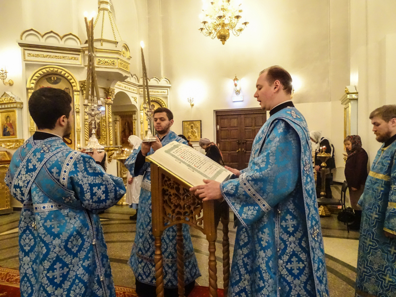 За Богослужением были вознесены особые прошения на сугубой ектении и прочитана молитва о мире на Украине.