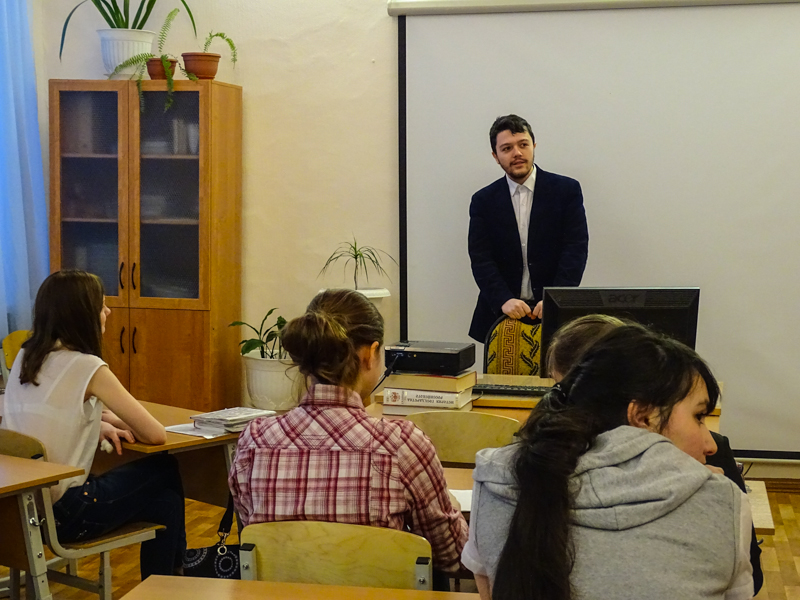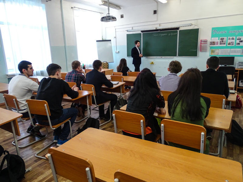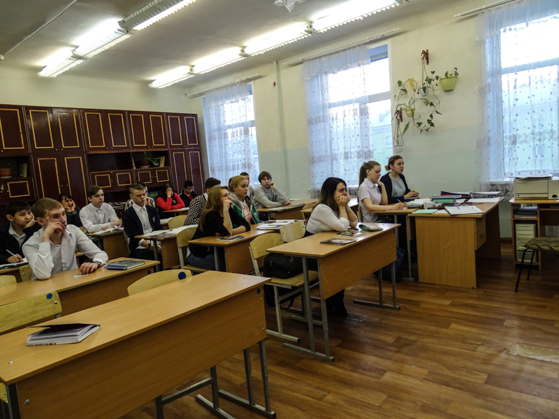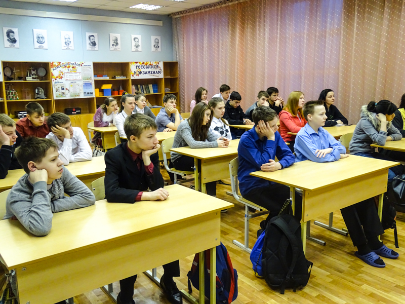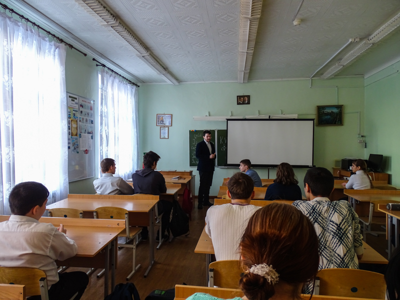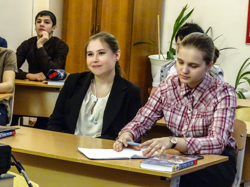 Четыре урока было проведено в средней общеобразовательной школе №3 города Норильска. Мы беседовали с девятыми, десятым и одиннадцатым классами. Ребята поразили нас своей заинтересованностью, вдумчивостью и разнообразием характеров. Самое главное, чему мы были очень рады, так это тому, что среди детей нет равнодушных. Завуч школы выразила огромное желание пригласить нас вновь для беседы с учениками."