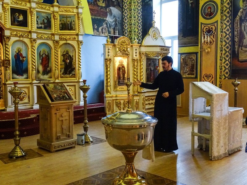 В заключении всем желащим было предложено попробовать собрать и разобрать автомат Калашникова. Для других желающих была проведена экскурсия в домовый храм в честь Рождества Иоанна Предтечи Норильского епархиального управления, где молодым людям рассказали об устройстве храма и некоторых правилах поведения в нем.