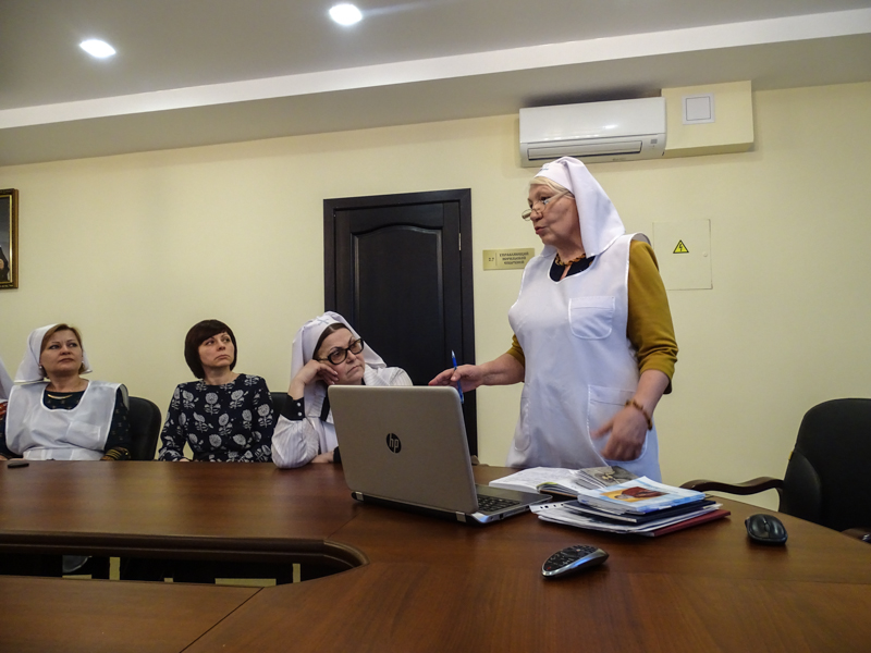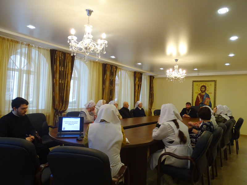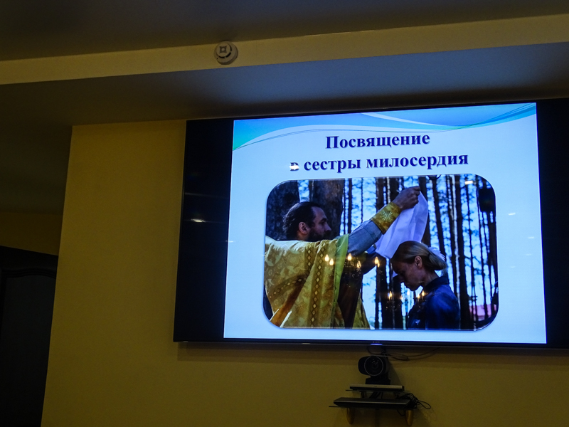 Старшей сестрой сестричеста Ласточкиной Татьяной Владимировной было представлено несколько презентаций, в которых рассказывалось об опыте крупных сестричеств, несущих свое служение в центральной России и на Украине. С этим опытом Татьяна Владимировна смогла познакомиться в рамках работы секции социального служения Рождественских общеобразовательных чтений, проходивших в Москве.