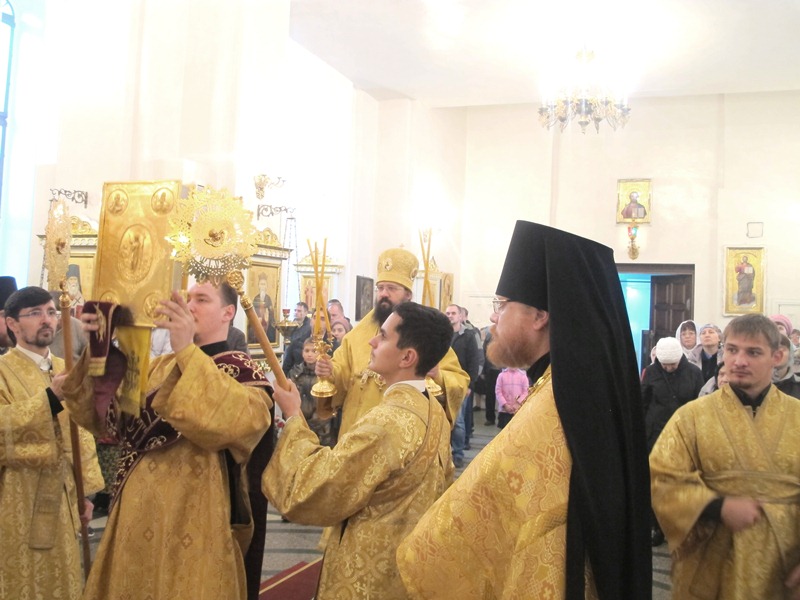 31 августа 2014 года 12 неделя по Пятидесятницы епископ Норильский и Туруханский Агафангел совершил Божественную Литургию в Кафедральном соборе в честь иконы Божией матери Всех скорбящих Радость города Норильска. Его преосвященству сослужили: и. о. секретаря Норильской епархии иеромонах Герман (Мельников), соборное духовенство.