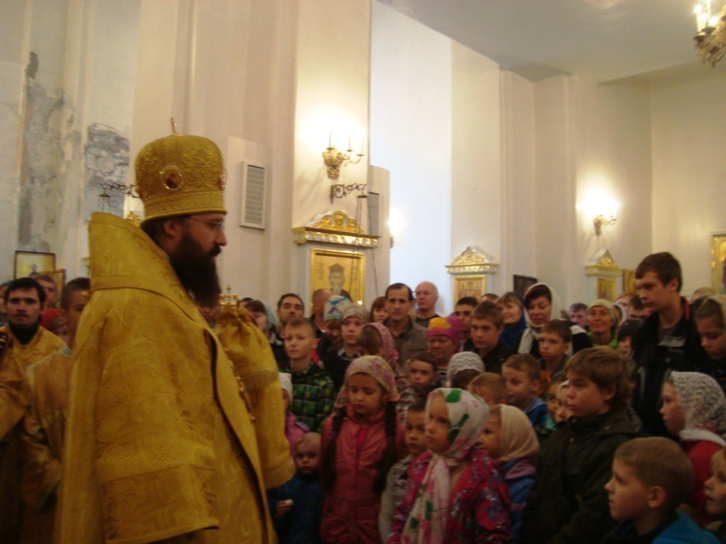 По окончании Богослужения Архипастырь обратился к прихожанам с проповедью. Владыка обратился особо к ученикам и учителям, поздравил их с началом учебного года и пожелал им всегда прибегать к помощи Божьей и не забывать, что целью учебы является не только получение знаний, но и духовное возрастание.