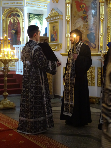 Его Преосвященству сослужили: секретарь Норильской епархии иеромонах Герман (Мельников); штатное духовенство собора;