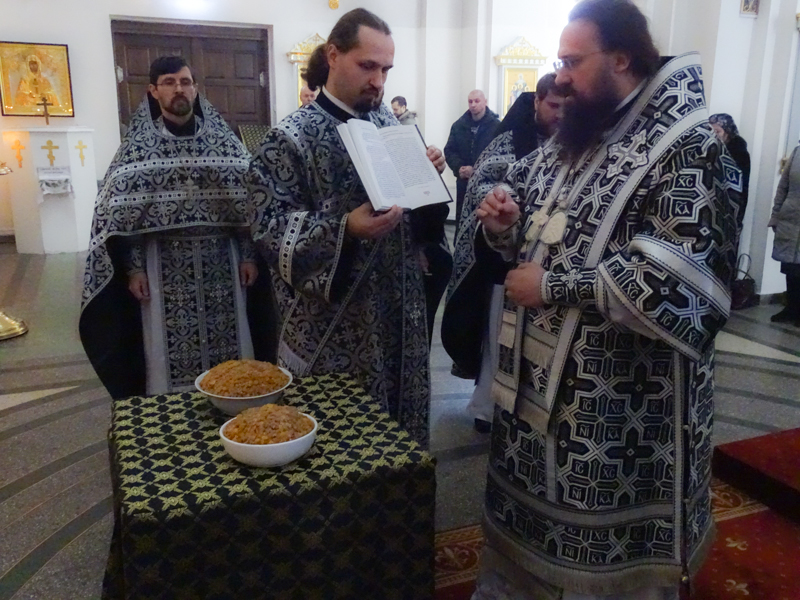 По окончании Литургии Владыка Агафангел совершил чин молебного пения великомученику Феодору Тирону и прочитал молитву над коливом. Затем Архипастырь обратился к прихожанам со словами проповеди.