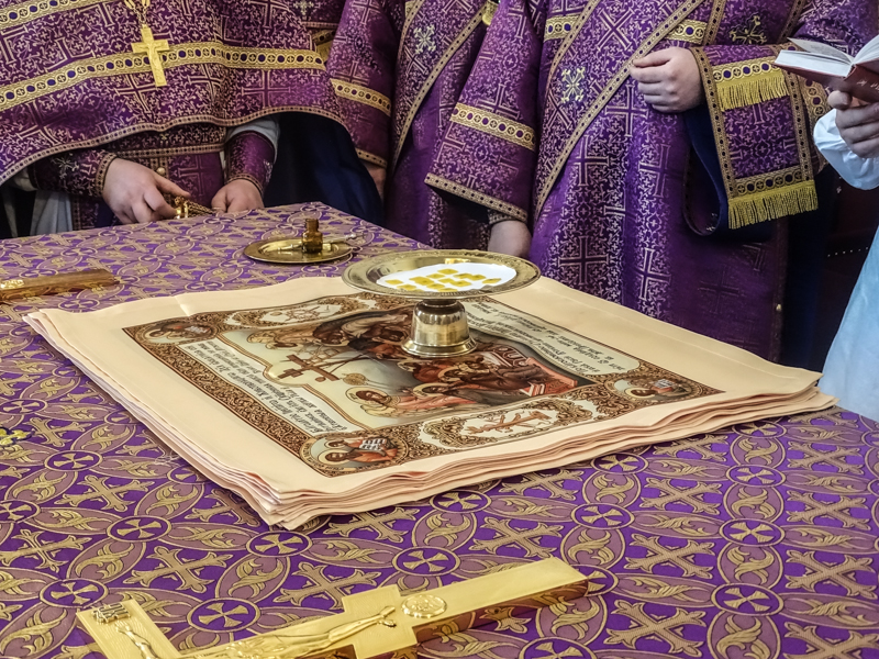 Перед началом Литургии епископ совершил чин освящения антиминсов для храмов Норильской епархии.