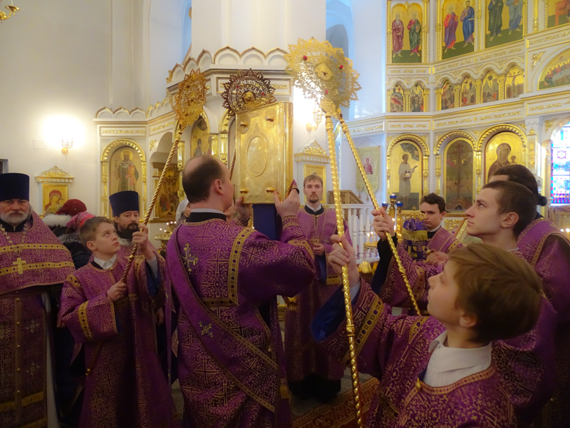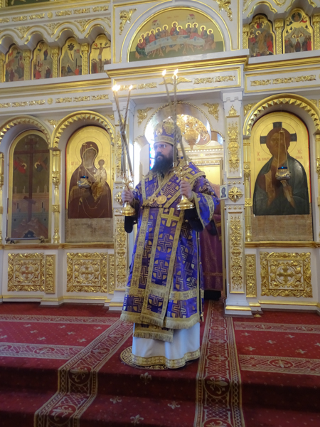 После сугубой ектении Архипастырь вознес молитву о мире на Украине.