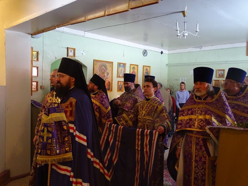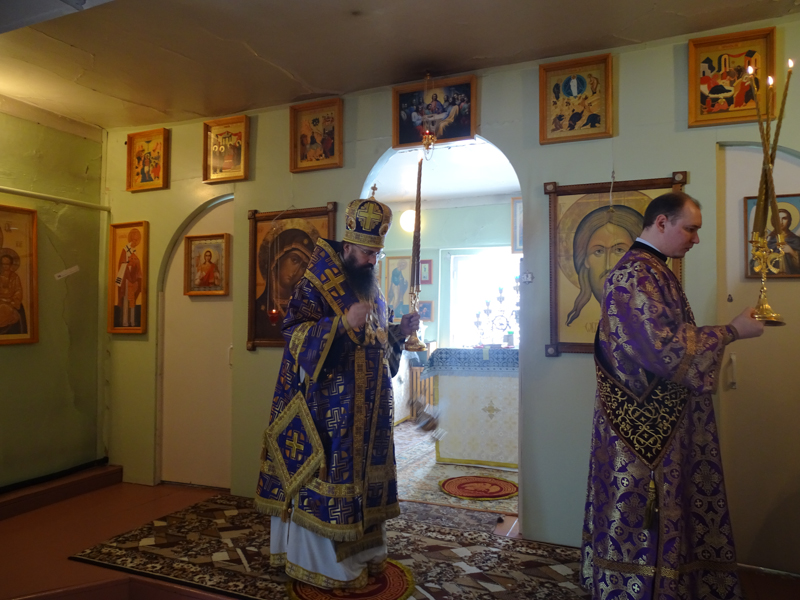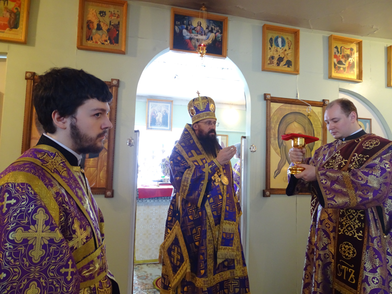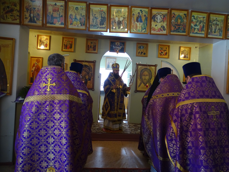 В снежногорском храме епархиальный архиерей совершил первую в этом приходе архиерейскую Божественную литургию Преждеосвященных Даров. Ему сослужили секретарь Норильской епархии иеромонах Герман (Мельников), Благочинные и настоятели приходов Норильской епархии. Сопровождал богослужение хор Норильского кафедрального собора. Настоятель храма иерей Александр Макаров за усердные труды был удостоен права ношения набедреника.