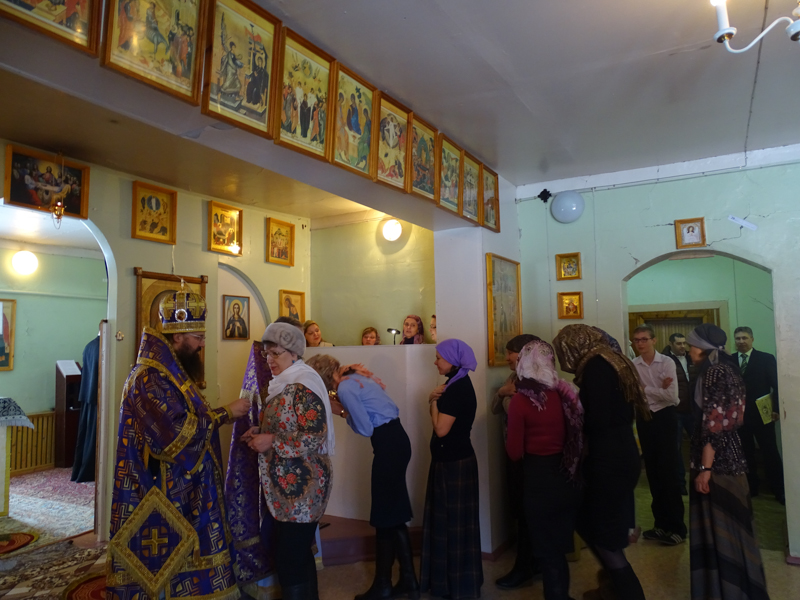 После богослужения Владыка встретился с главой администрации посёлка. Речь шла о помощи молодому приходу и строительстве нового храма.