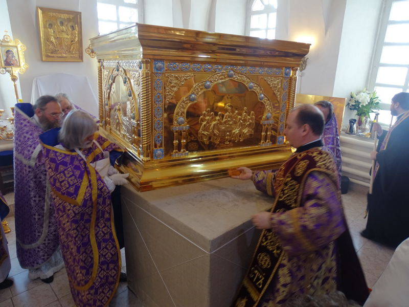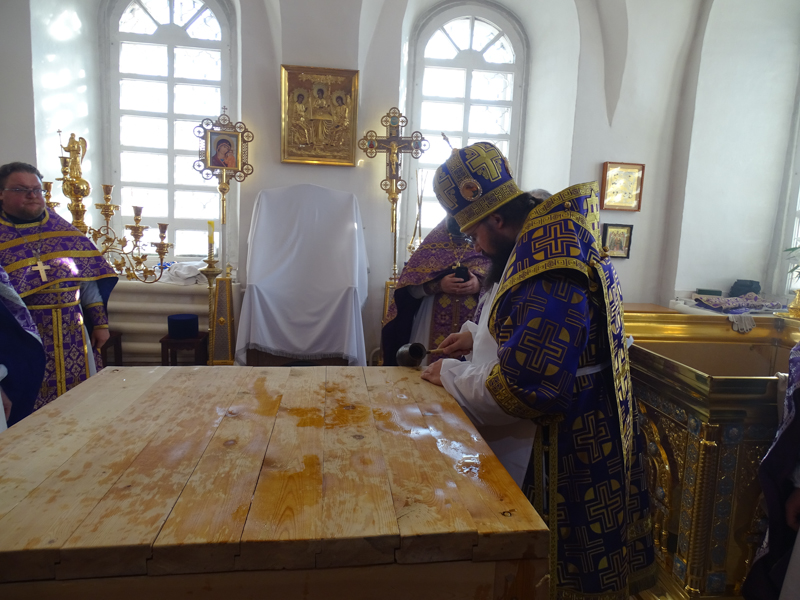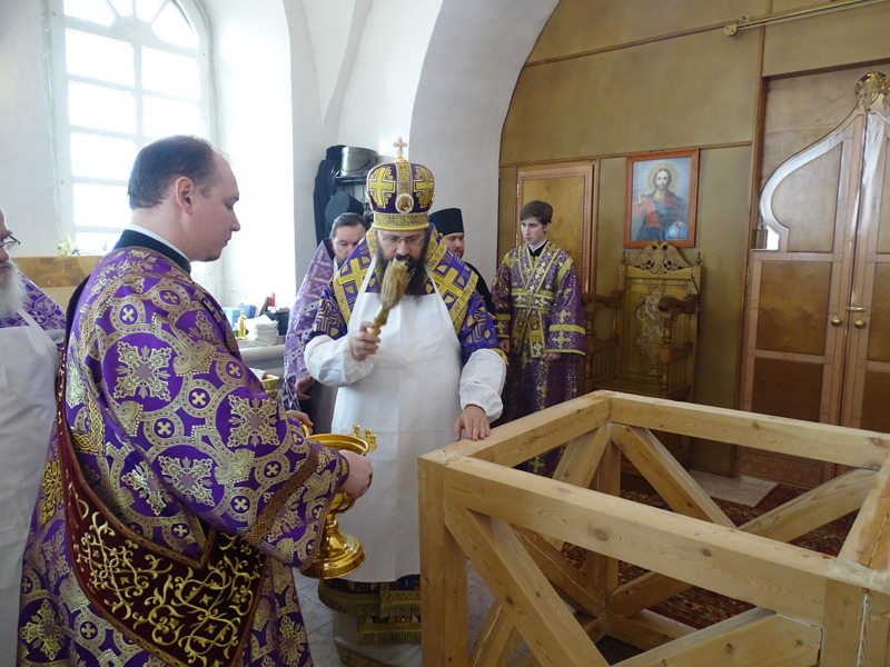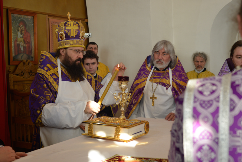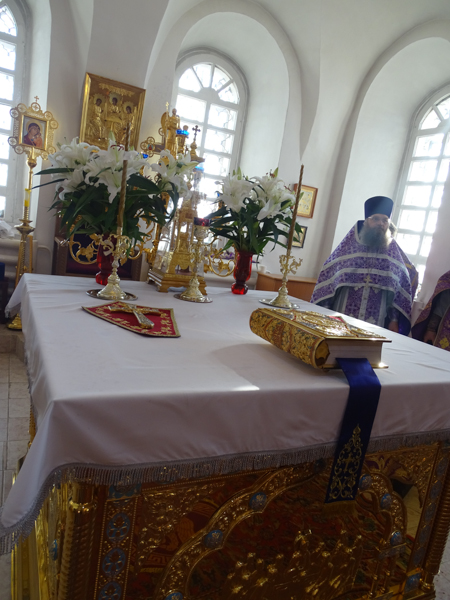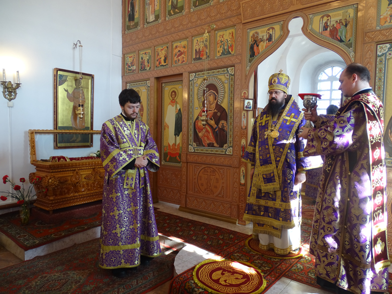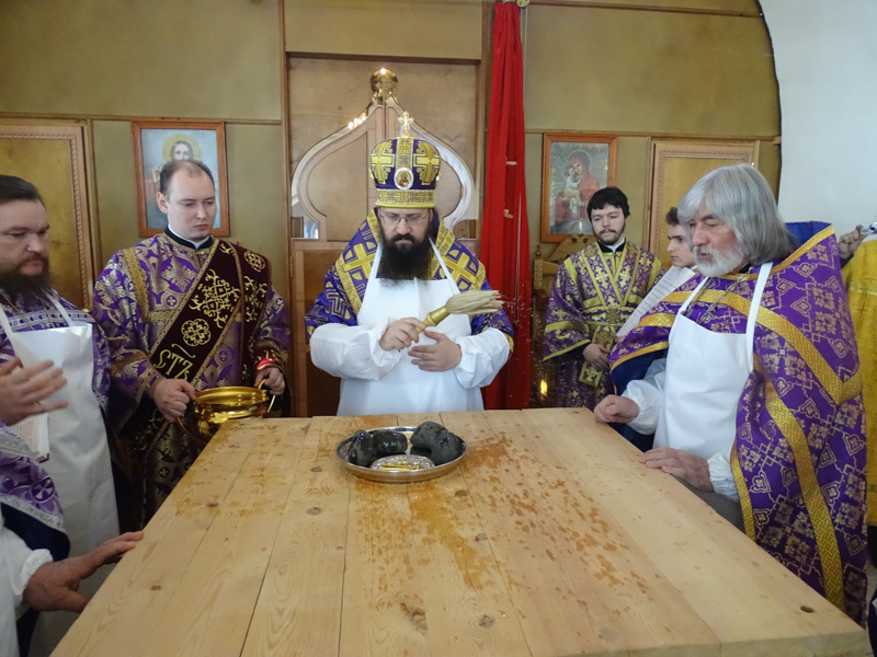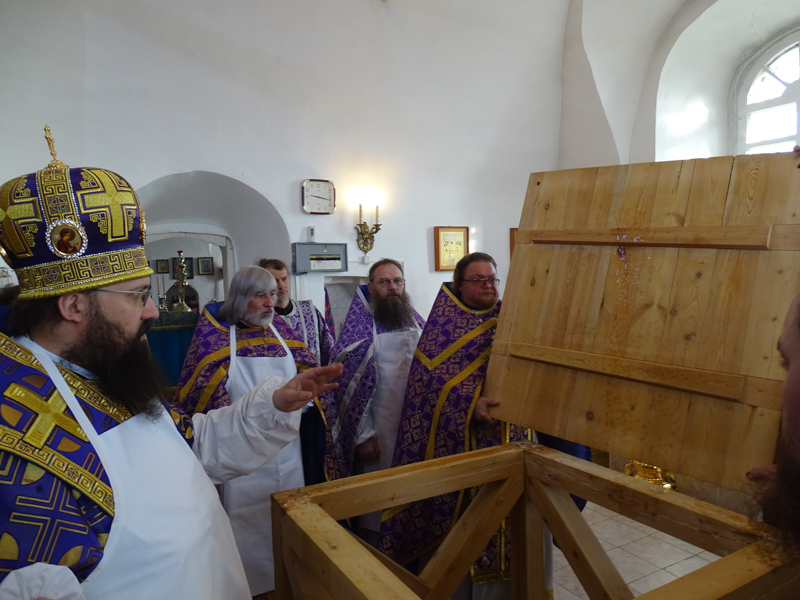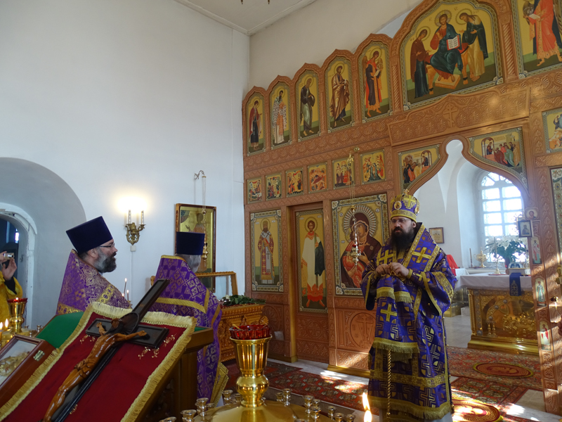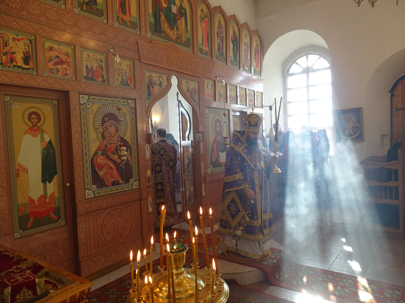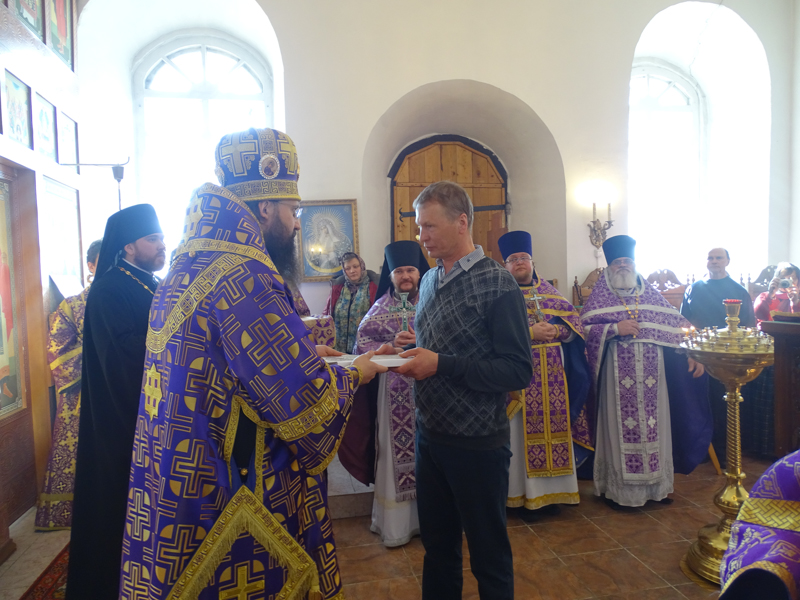 За Литургией Преосвященнейший Агафангел епископ Норильский и Туруханский удостоил Настоятеля Светлогоского храма иерея Александра Попова правом ношения наперсного креста. Сопровождал богослужение хор Норильского кафедрального собора.