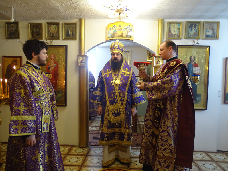 В этот же день епископ Норильский Туруханский Агафангел совершил Литургию Преждеосвященных Даров в храме Покрова Пресвятой Богородицы в поселке Светлогорск. Ему сослужили секретарь Норильской епархии иеромонах Герман (Мельников), Благочинные и настоятели приходов Норильской епархии.