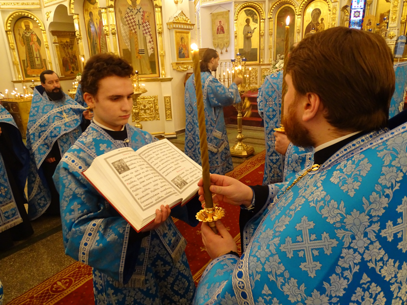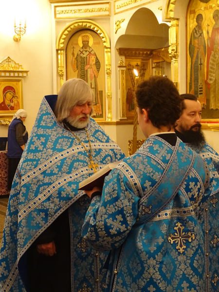 Его Преосвященству сослужили: секретарь Норильской епархии иеромонах Герман (Мельников); благочинный Норильского округа протоиерей Владимир Иванов; штатный клир собора.