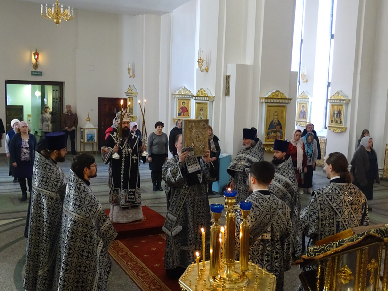 26 апреля 2016 года, в Великий вторник, Преосвященный Агафангел, епископ Норильский и Туруханский, совершил Божественную литургию Преждеосвященных Даров в кафедральном соборе в честь иконы Божией Матери «Всех скорбящих Радость» города Норильска.