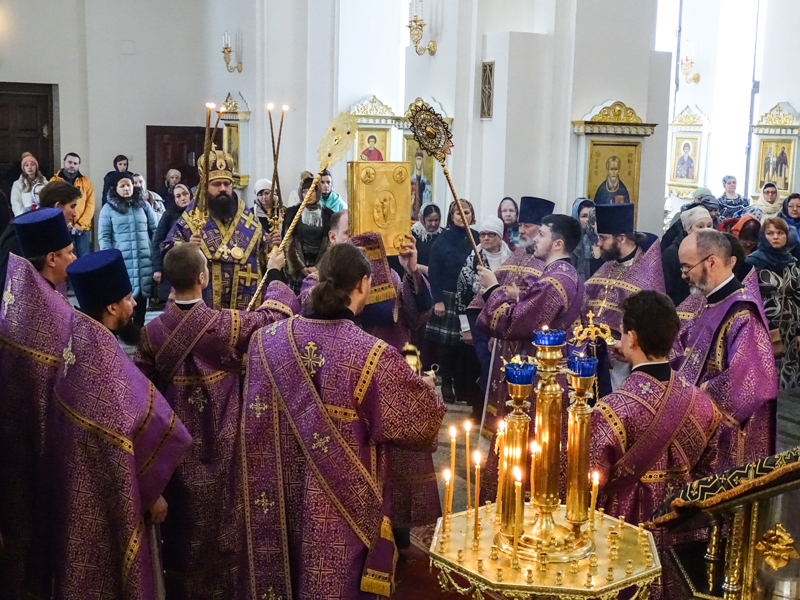 Его Преосвященству сослужили: секретарь Норильской епархии иеромонах Герман (Мельников); благочинный Норильского округа протоиерей Владимир Иванов; штатное духовенство кафедрального собора.