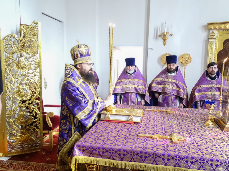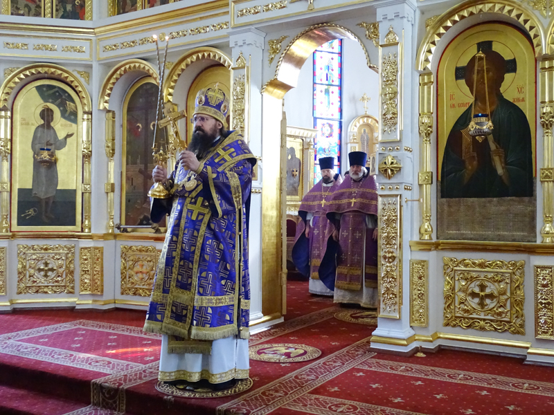 После чтения Евангелия, епископ Агафангел произнес проповедь.