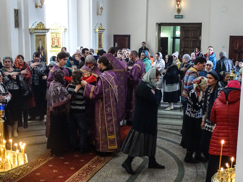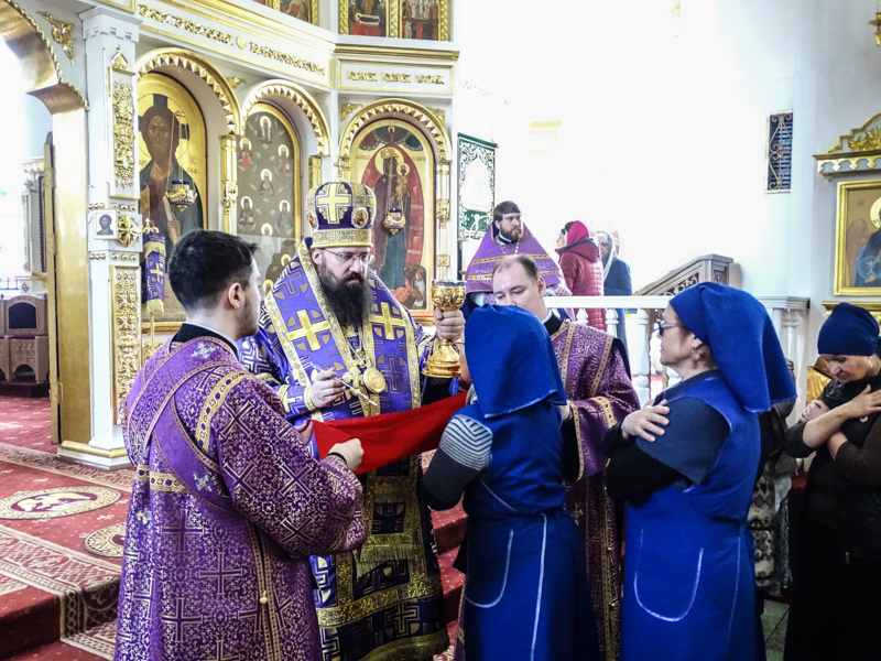 По окончании богослужения Архипастырь обратился к верующим со словами назидания и поздравил многочисленных причастников с принятием Святых Христовы Тайн.