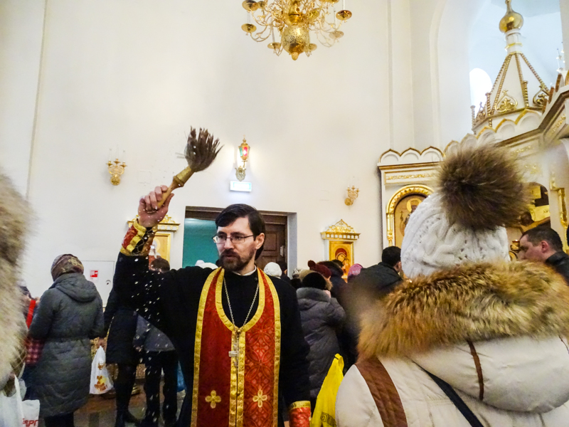 В это солнечное утро в Норильске очень холодно и ветрено, но большинство не торопилось покинуть церковный двор, ведь здесь происходило столько интересного!