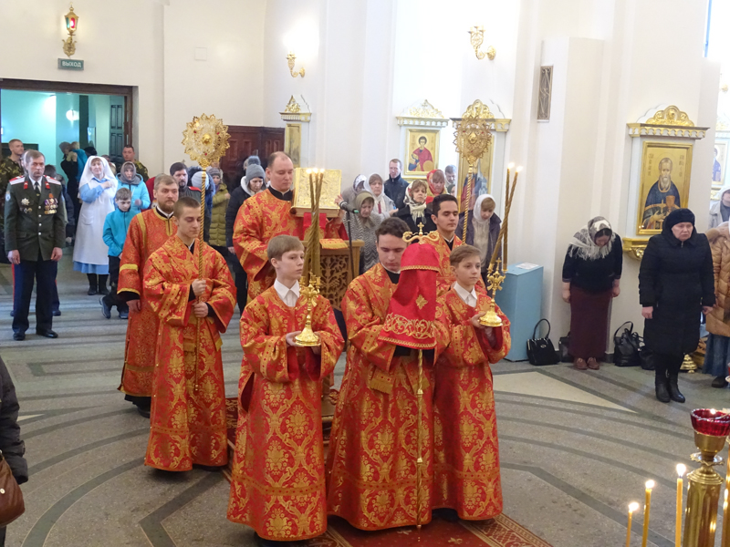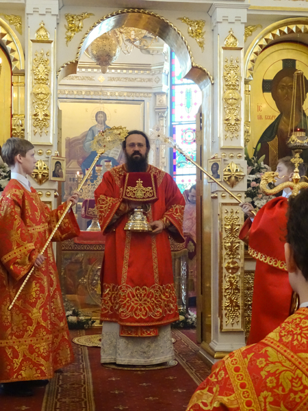 Его Преосвященству сослужили: секретарь Норильской епархии иеромонах Герман (Мельников); штатный клир собора.
