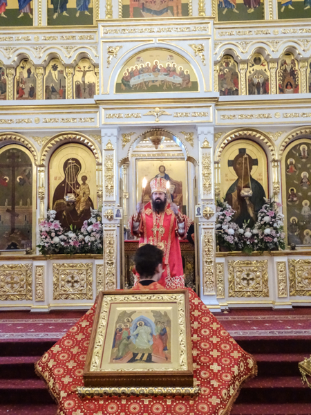 После вожжения всех светильников собора, был совершен пасхальный Крестный ход.