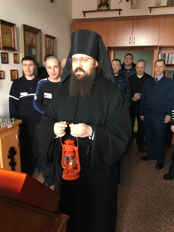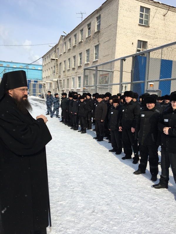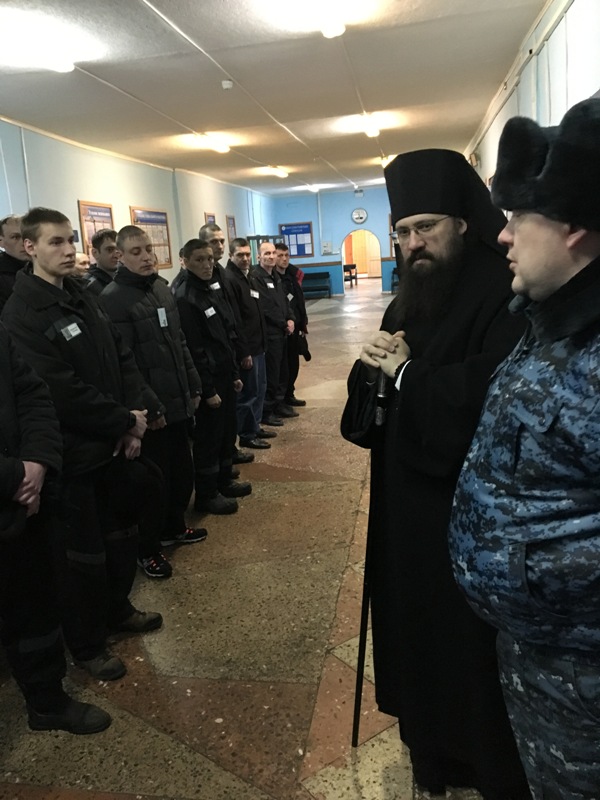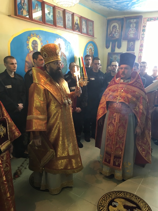 В сопровождении начальника исправительного учреждения, подполковника внутренней службы Лапшина Дмитрия Сергеевича, Управляющий Норильской епархии посетил отряд строгих условий содержания и колонию-поселение, где преподнес осужденным и сотрудникам ФСИН свое архипастырское благословение, обратившись к каждому со словами пасхального приветствия. Подобные мероприятия, когда Архиерей Норильской епархии, в сопровождении духовенства, посещает пенитенциарные учреждения в период пасхальных празднеств, уже стали доброй традицией, что благотворно влияет на общую духовную обстановку среди заключенных.
