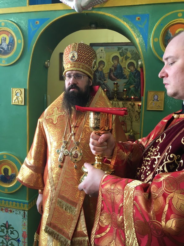 Его Преосвященству сослужили: секретарь Норильской епархии иеромонах Герман (Мельников); руководитель епархиального отдела по взаимодействию с ВС и силовыми структурами, настоятель храма протоиерей Димитрий Харцыз.