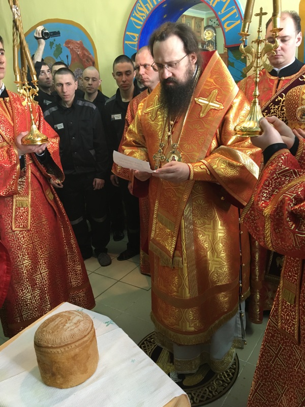 По окончании богослужения Архипастырь прочитал молитву на раздробления Артоса. В своей проповеди Владыка поздравил собравшихся в храме заключенных и сотрудников учрежденияя с праздником Пасхи и подарил всем иконки святого мученика Василия Мангазейского с благословением Святейшего Патриарха Кирилла.
