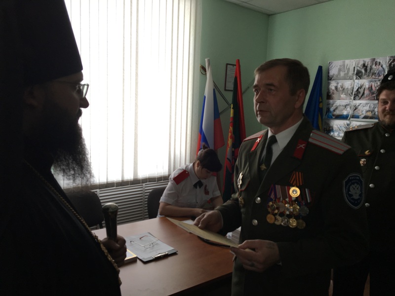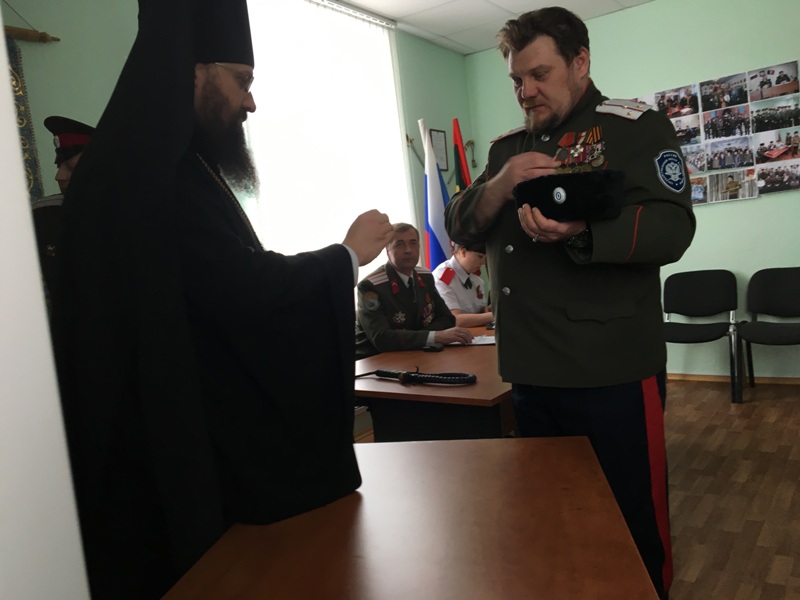 В свою очередь атаман Юрий Александрович Кононченко поблагодарил епископа Агафангела за активное участие в деле становления и развития Норильского городского казачьего общества Енисейского казачьего войска и вручил Владыке Благодарственное письмо.