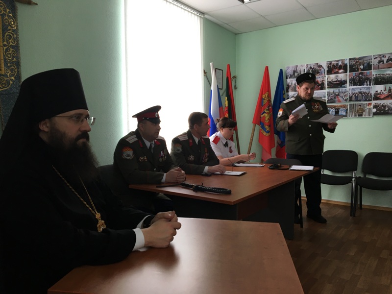 В ходе работы круга епископ Агафангел обратился к казакам с поздравление с праздником Пасхи и словами благодарности за понесенную службу во время пасхальных торжеств на территории кафедрального собора города Норильска. Всем казакам Архипастырь подарил иконы Божией Матери «Всех Скорбящих Радость».