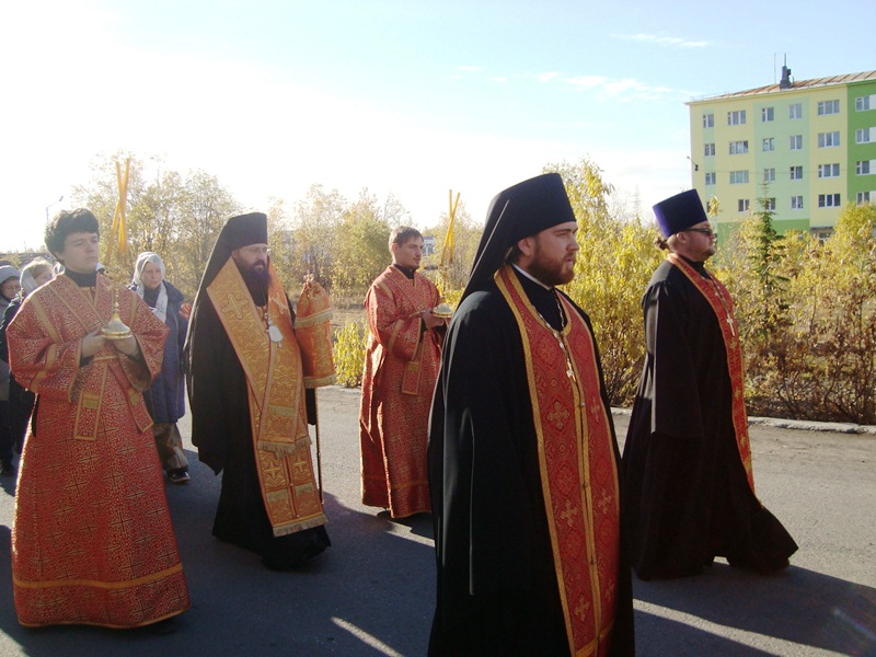 11 сентября, в день памяти Усекновения главы Пророка, Предтечи и Крестителя Господня Иоанна, Преосвященнейший Агафангел, Епископ Норильский и Туруханский совершил Божественную Литургию в Свято-Троицком храме р-на Талнах города Нориьска. Его Преосвященству сослужили: и.о. секретаря Норильской епархии иеромонах Герман (Мельников), настоятель храма Свято-Троицкого р-на Талнах протоиерей Даниил Тихонов, настоятель Богоявленского храма поселка Хатанга иеромонах Ефимий (Гончаров), председатель епархиального отдела по социальному служению иерей Алексий Пирогов, штатный священник Свято-Троицкого храма р-на Талнах иерей Сергий Кузьменко.