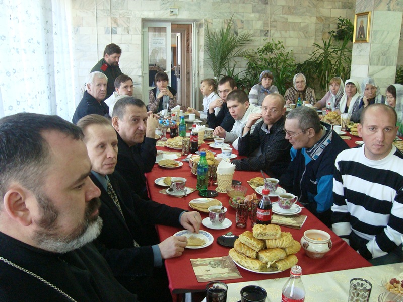 После молебна Правящий Архиерей совершил крестный ход к православному реабилитационному центру «Лествица», где вознес молитву ко Господу о благополучии прихода и общины, ведущей борьбу с недугом пьянства и наркомании. В завершении своего визита, Владыка, за праздничным столом, провёл беседу с прихожанами Свято-Троицкого храма, руководством центра и людьми проходящими реабилитацию.