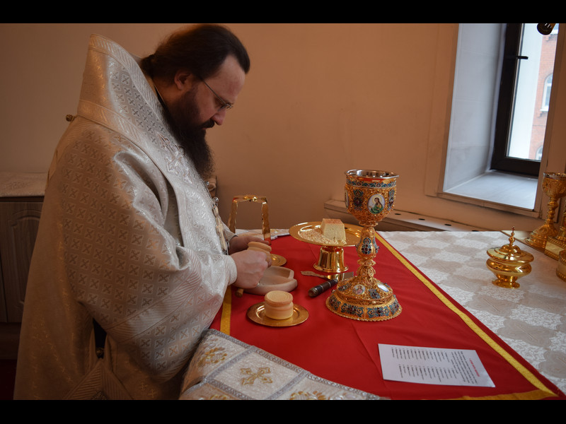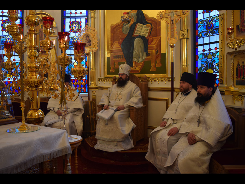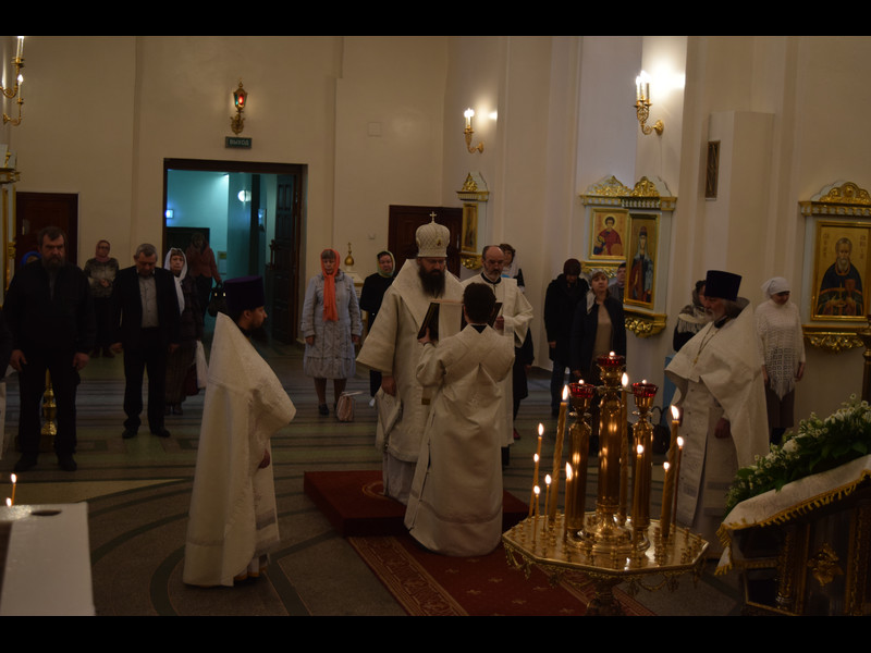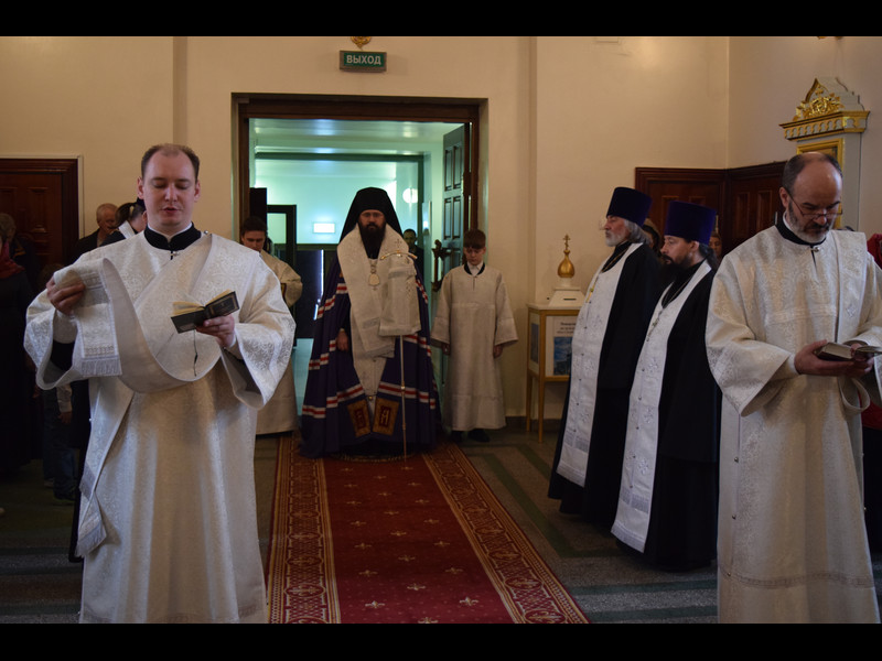 Его Преосвященству сослужили: секретарь Норильской епархии иеромонах Герман (Мельников); благочинный Норильского округа протоиерей Владимир Иванов; штатное духовенство кафедрального собора.