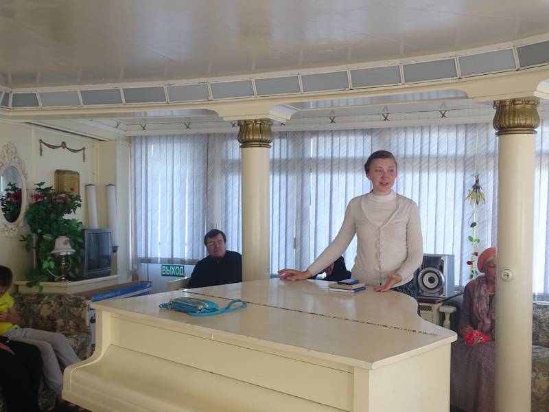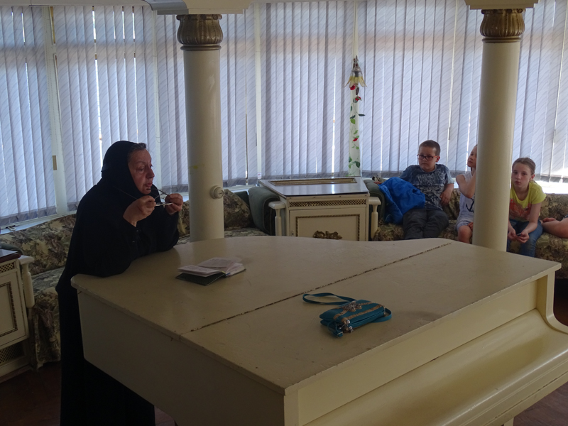 Не дожидаясь прибытия на место, начали силами членов делегации, сопровождающих Владыку, с детьми были проведены лекции и беседы, которых особое место было отведено разговору о святых, их роли в жизни православных людей, традиций иконографии святых.