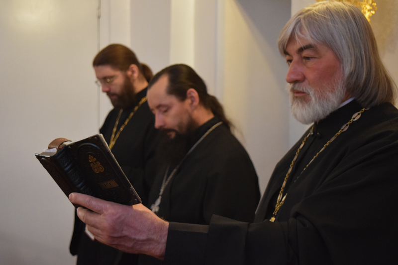 Его Преосвященству сослужили: секретарь Норильской епархии иеромонах Герман (Мельников); благочинный Норильского округа протоиерей Владимир Иванов; соборное духовенство.