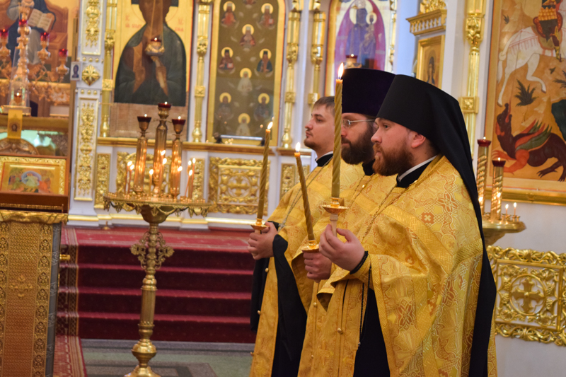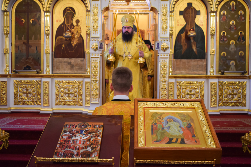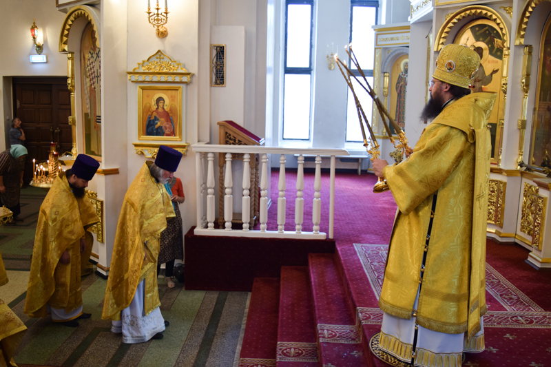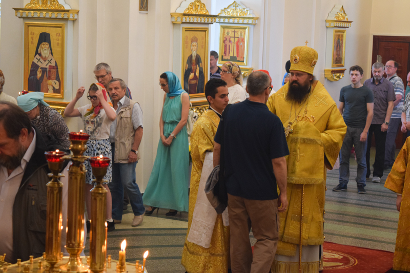По окончании Литургии Архипастырь совершил славление и прочел молитву всем святым земли Русской.