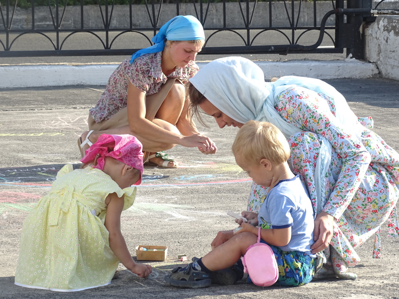 После вечернего богослужения семьям прихода было предложено нарисовать свою дружную семью мелками на асфальте, дети и взрослые с радостью согласились. Каждый ребенок за участие получил сладкий сюрприз.