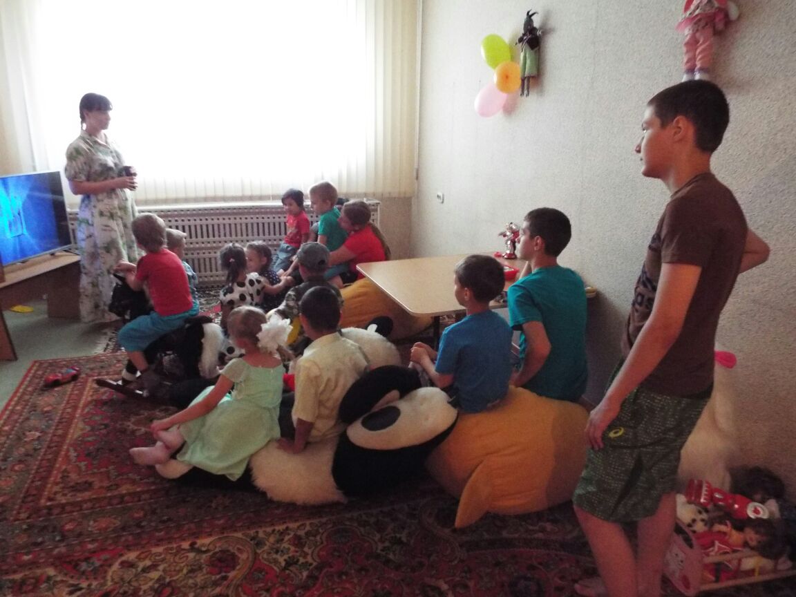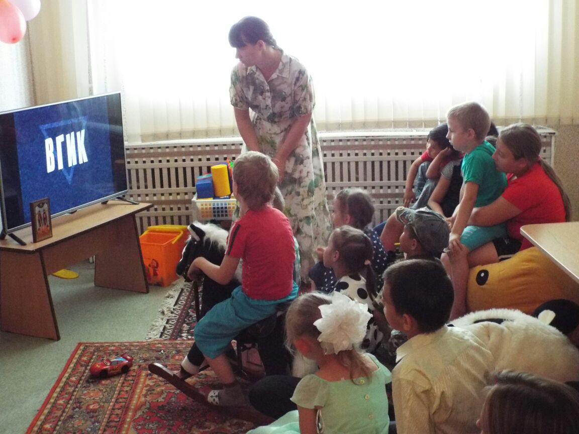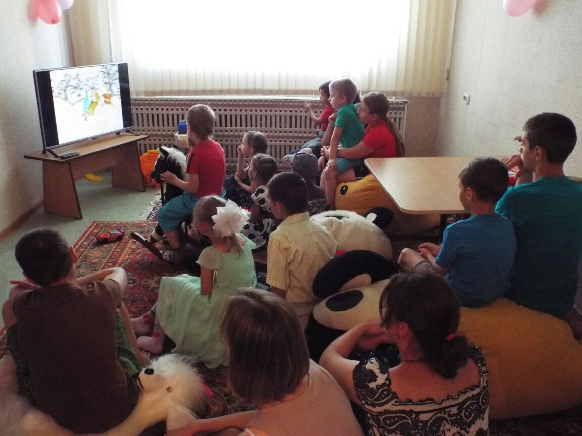 Затем все собравшиеся посмотрели мультфильм о жизни святых благоверных Петра и Февронии. После того как все ребята подкрепились вкусными угощениями, поиграли в спортивные игры и отгадали загадки о семье все дружно принялись рисовать большое семейное дерево из ладошек.