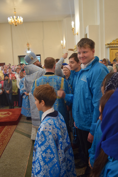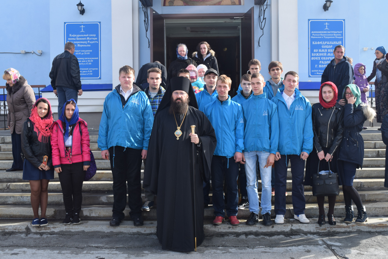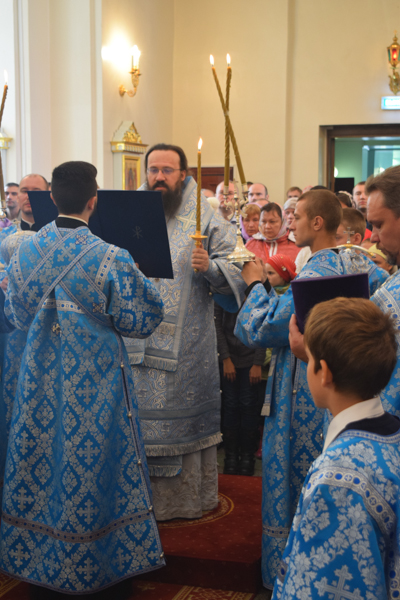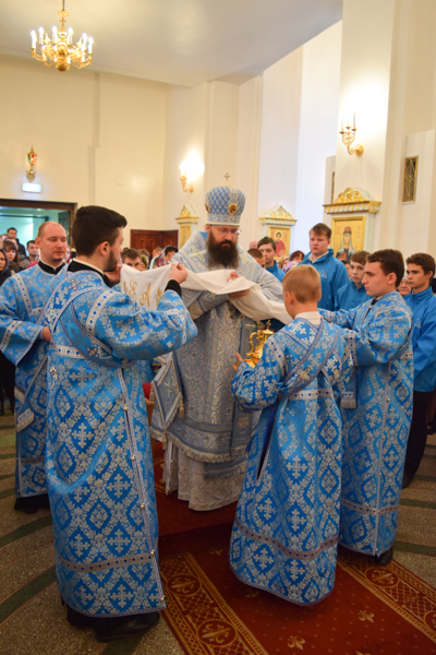 По окончании Литургии Архипастырь и духовенство совершили молебен на начало учения отроков, после которого Владыка произнес проповедь.