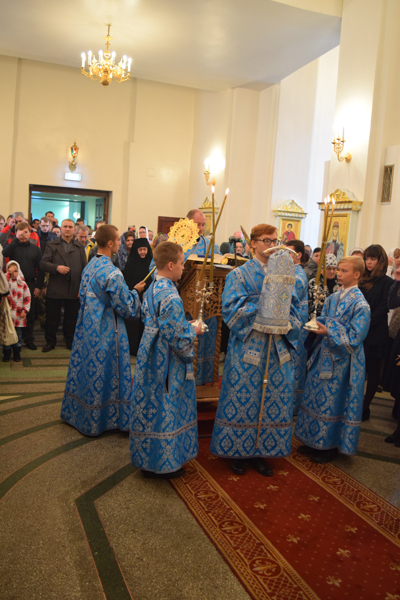 Его Преосвященству сослужили:секретарь Норильской епархии иеромонах Герман (Мельников); руководитель епархиального отдела по взаимодействию с силовыми структурами протоиерей Димитрий Харцыз; штатный клир кафедрального собора.