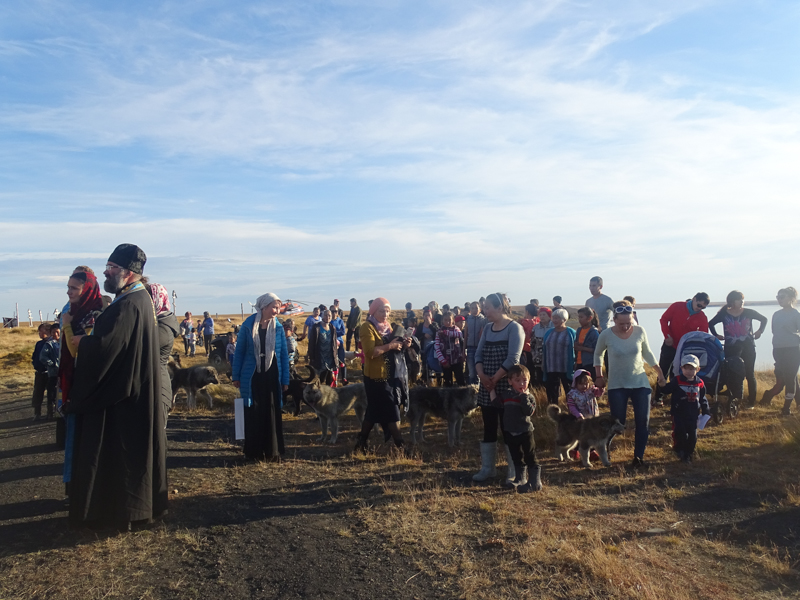 Завершения строительства храма ждет с нетерпением весь поселок. Строители работают весь световой день и прервали свою работу только на время богослужения. Молебен служили на улице возле здания храма. Казалось, что вместе с взрослыми почти все детское население собралось на крутом берегу Хатанги, а его здесь не мало: только в одиннадцати классах средней школы 106 учащихся, 60 детей пользуются услугами детского сада. Среди родителей школьников 36 семей - многодетные.