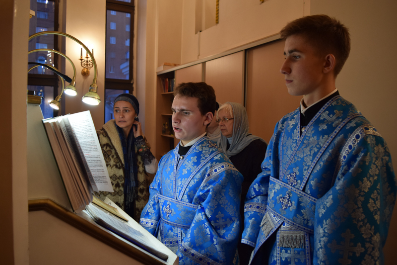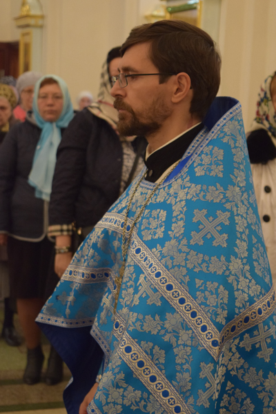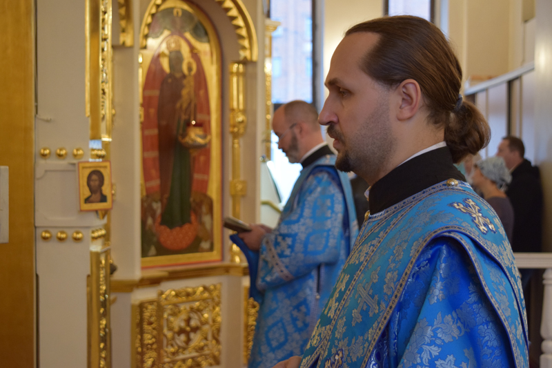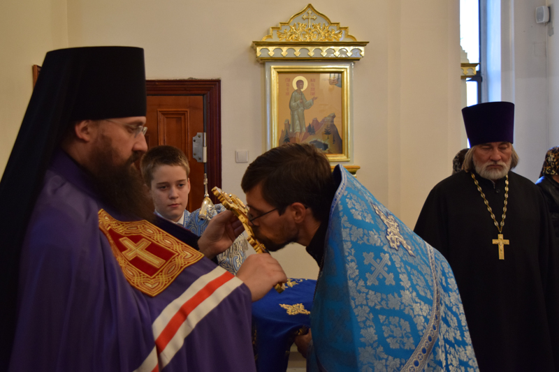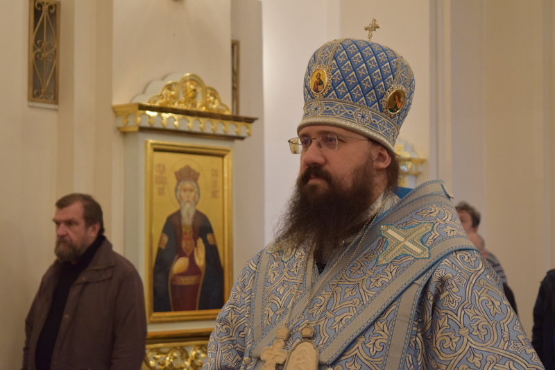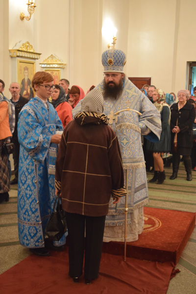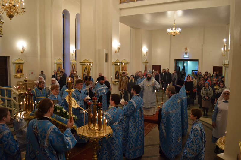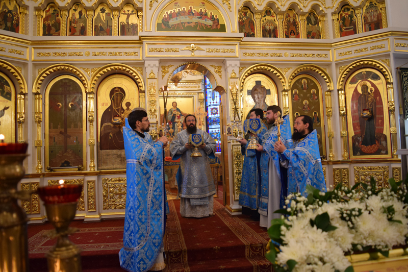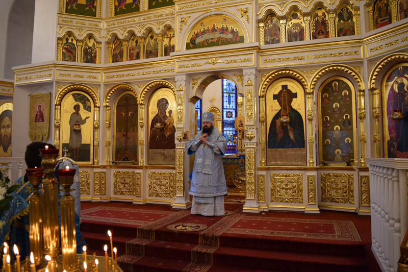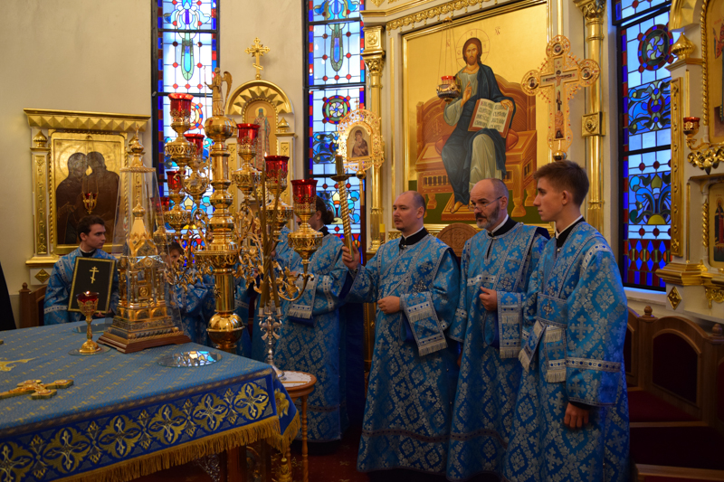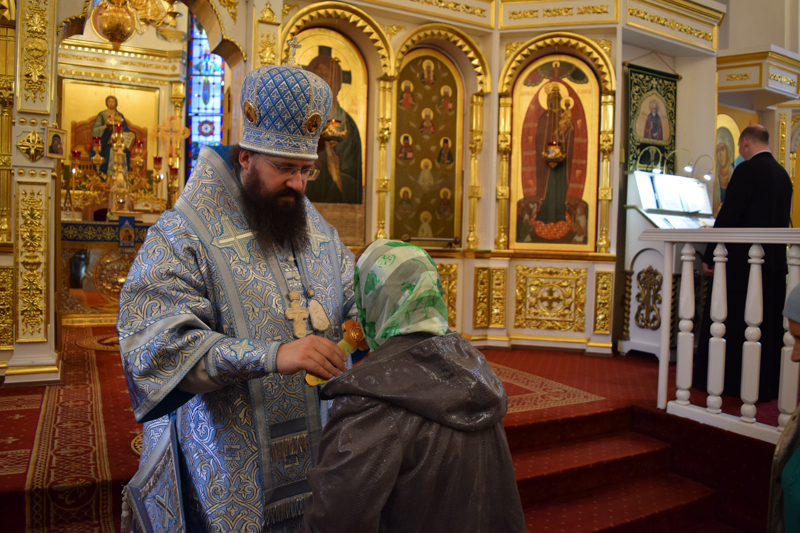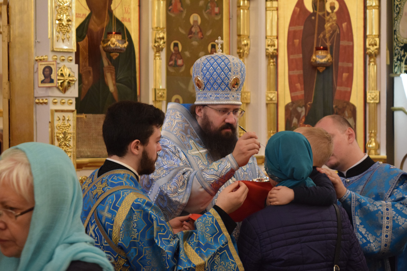 После причастия Архипастырь с духовенством кафедрального собора совершили славление перед иконой праздника.
