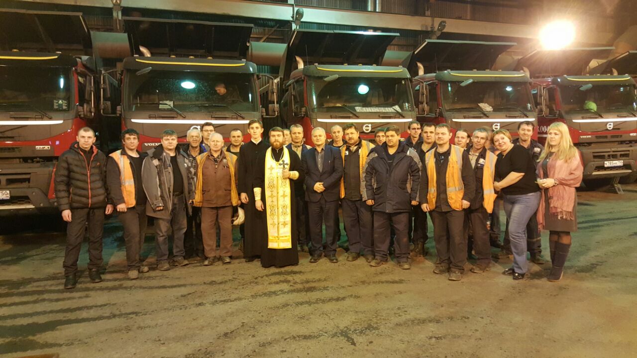 По окончании богослужения священник окропил святой водой новую технику, не так давно пополневшую автопарк «Норильскпромтранспорта», а также сотрудников предприятия, которым предстоит производить работы с этой техникой не только на поверхности, но и под землей.
