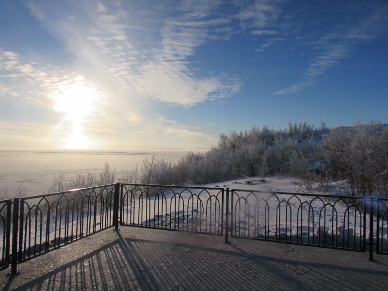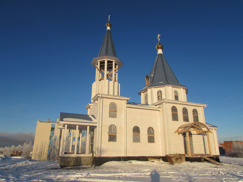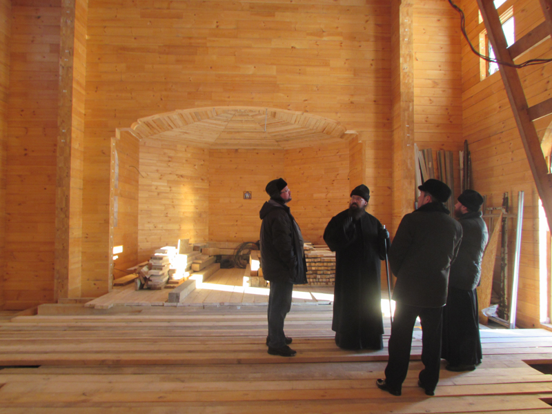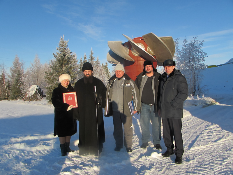 Дружное активное начало позволяет надеяться, что храм в Снежногорске будет в намеченные сроки. В этом убеждает опыт быстрого строительства храма в поселке Курейской ГЭС – Светлогорске Туруханского благочиния. В приходе поселка за год общим попечением гидростроителей, администрации поселка, спонсоров, епархии и прихода сегодня завешено строительство храма. Познакомиться с этим опытом строительства «всем миром», показать интересный реализованный проект и решить вопрос с убранством нового храма – такова была цель второй остановки в Светлогорске.