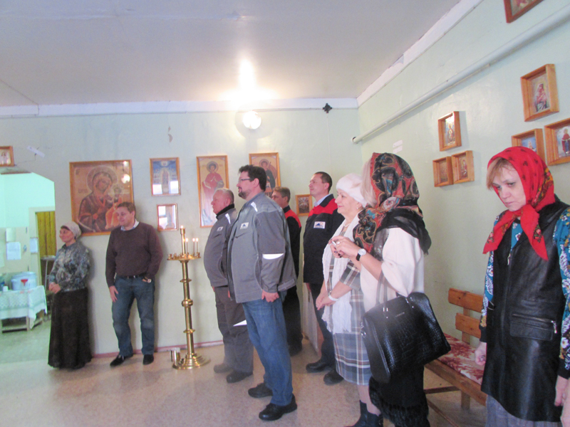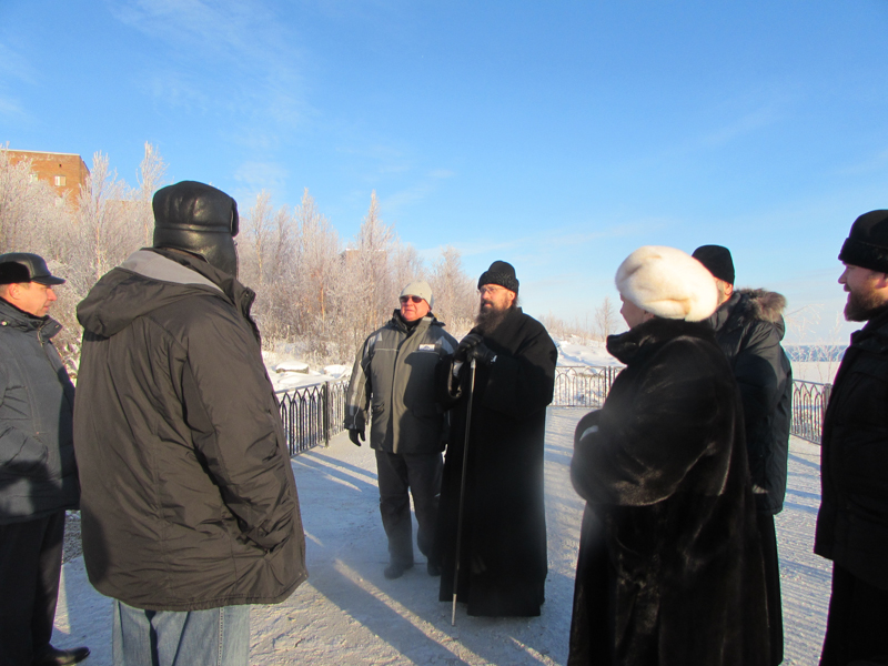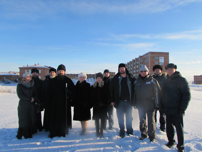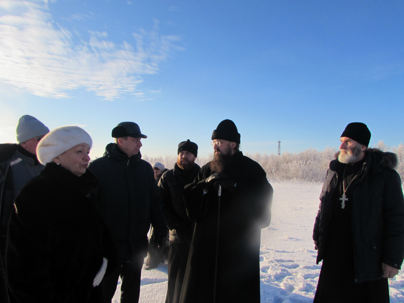 Первым на маршруте был поселок работников Хантайской ГЭС Снежногорск Норильского благочиния. В поселке действует храм в честь Сретения Господня, расположенный в приспособленном для этого ветхом помещении, поэтому настоятель храма иерей Александр Макаров и его прихожане давно мечтали о храме и вот настало время начала строительства. На вертолетной площадке Владыку и сопровождающих его лиц встретила глава администрации поселка Горовая Светлана Николаевна. Как всякое доброе дело начали с молебна в храме. После этого Владыка рассказал прихожанам о цели своего приезда и выслушал предложения жителей поселка по размещению храма. Были свои предложения и у администрации поселка.